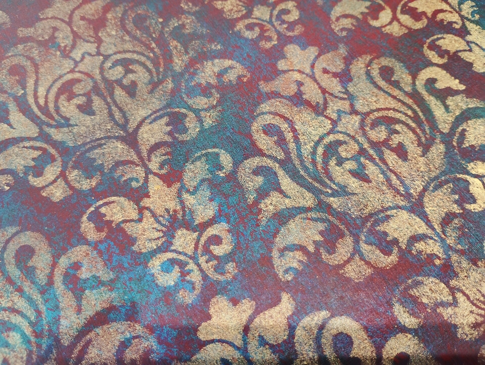Aggiungi un tocco di eleganza al tuo salotto con questo splendido tavolinetto da caffè, inizialmente in noce, ora invece reso elegante con il motivo damascato e le gambe rifinite in foglia oro. Questo mobile unico porterà un'atmosfera romantica e accogliente alla tua casa.